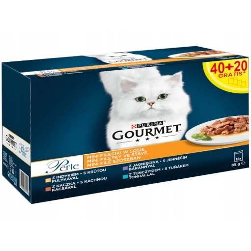 Karma Dla Kota MOKRA Purina Gourmet Perle Mini Fileciki w Sosie MIX 12 x85g