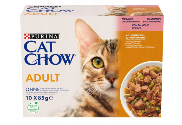 CAT CHOW Adult Karma dla kotów z łososiem i fasolką w galaretce 10 x 85 g