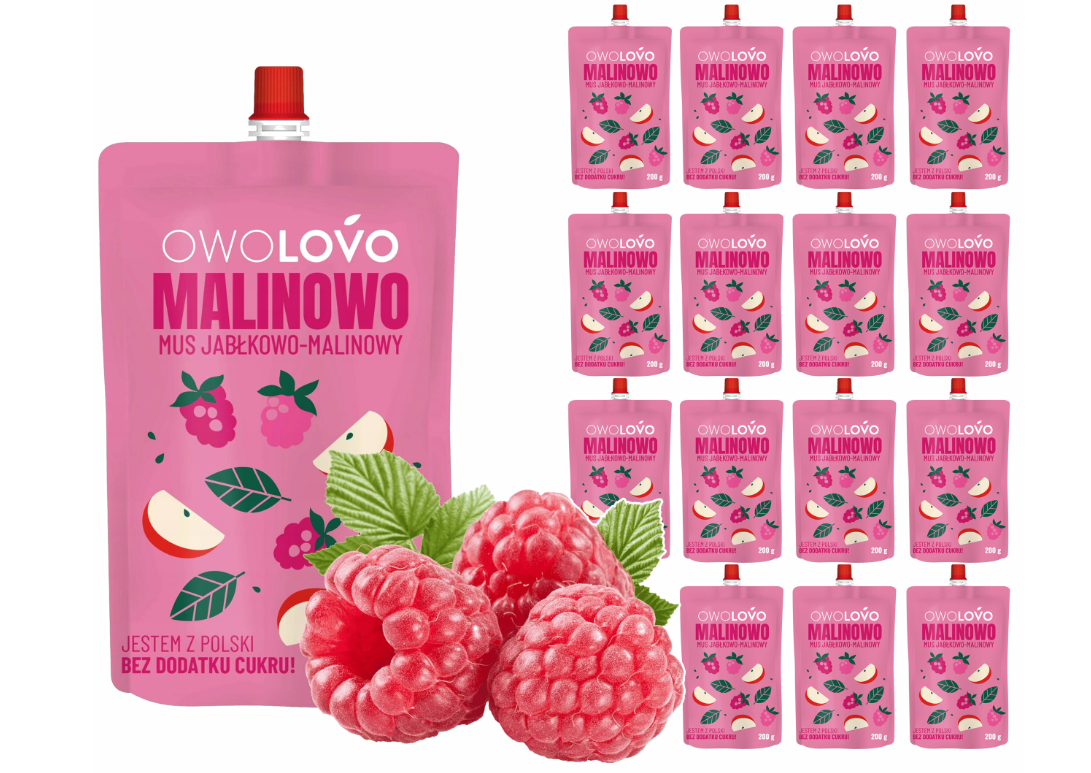 Odkryj niezwykłe połączenie smaków! Słodka i orzeźwiająca malina w połączeniu z soczystym jabłkiem to prawdziwa eksplozja smaków. Przekonaj się sam i pozwól sobie na powrót do lata z OWOLOVO!