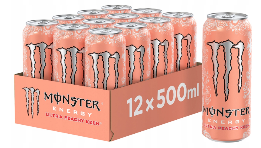 Napój Monster Energy Ultra Peachy Keen energetyk 12x 500ml ZESTAW różowy