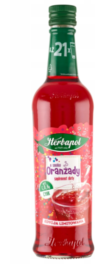 SKŁADNIKI A – syrop glukozowo-fruktozowy i/lub B – cukier; woda; regulator kwasowości – kwas cytrynowy; aromat; zagęszczony sok z owoców granatu (0,1%); barwnik – azorubina (może mieć szkodliwy wpływ na aktywność i skupienie uwagi u dzieci) WARTOŚĆ ODŻYWCZA W 100 ML SYROPU wartość energetyczna: 1490 kJ/351 kcal węglowodany – 86 g – w tym cukry – 84 g sól – 0 g Zawiera znikome ilości tłuszczu (w tym kwasów tłuszczowych nasyconych) oraz białka.