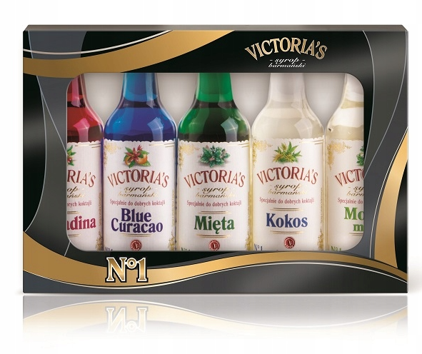 Cechy produktu: pojemność: 5x50 ml smak: Grenadina, Blue Curacao, Mięta, Kokos, Mojito mint producent: Victoria Cymes